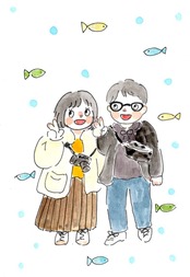 写真を元にゆるくて、かわいい、雰囲気にがおえを描きます。